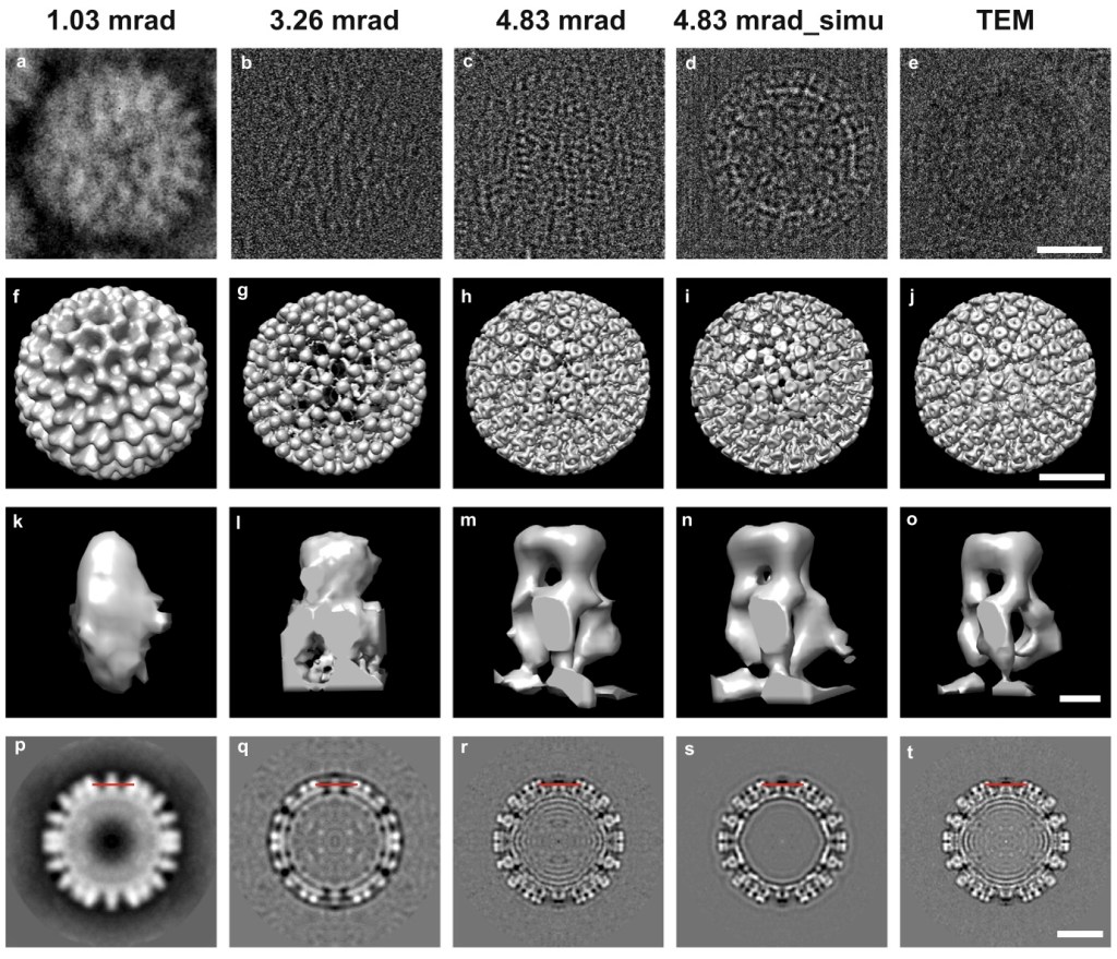Pei#, X., Zhou#, L., Huang#, C., Boyce, M., Kim, J. S., Liberti, E., Hu, Y., Sasaki, T., Nellist, P. D., Zhang, P., Stuart, D. I., Kirkland*, A. I. & Wang*, P. Cryogenic electron ptychographic single particle analysis with wide bandwidth information transfer. Nature Communications 14, 3027, (2023).